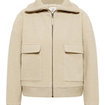 The relaxed fit, ribbed wool collar and patch pockets give the look a trendy yet cozy character.