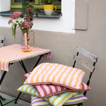 Our seat cushion not only offers you soft comfort, but also brings energy and warmth to your living space. The 100% organic cotton cover feels pleasant to the touch, while the recycled cotton filling makes sitting particularly cosy. The bold, warm colours add cheerful accents and invite you to sit down on a chair and enjoy the moment. The practical ties on the back ensure that your cushion always stays in place.