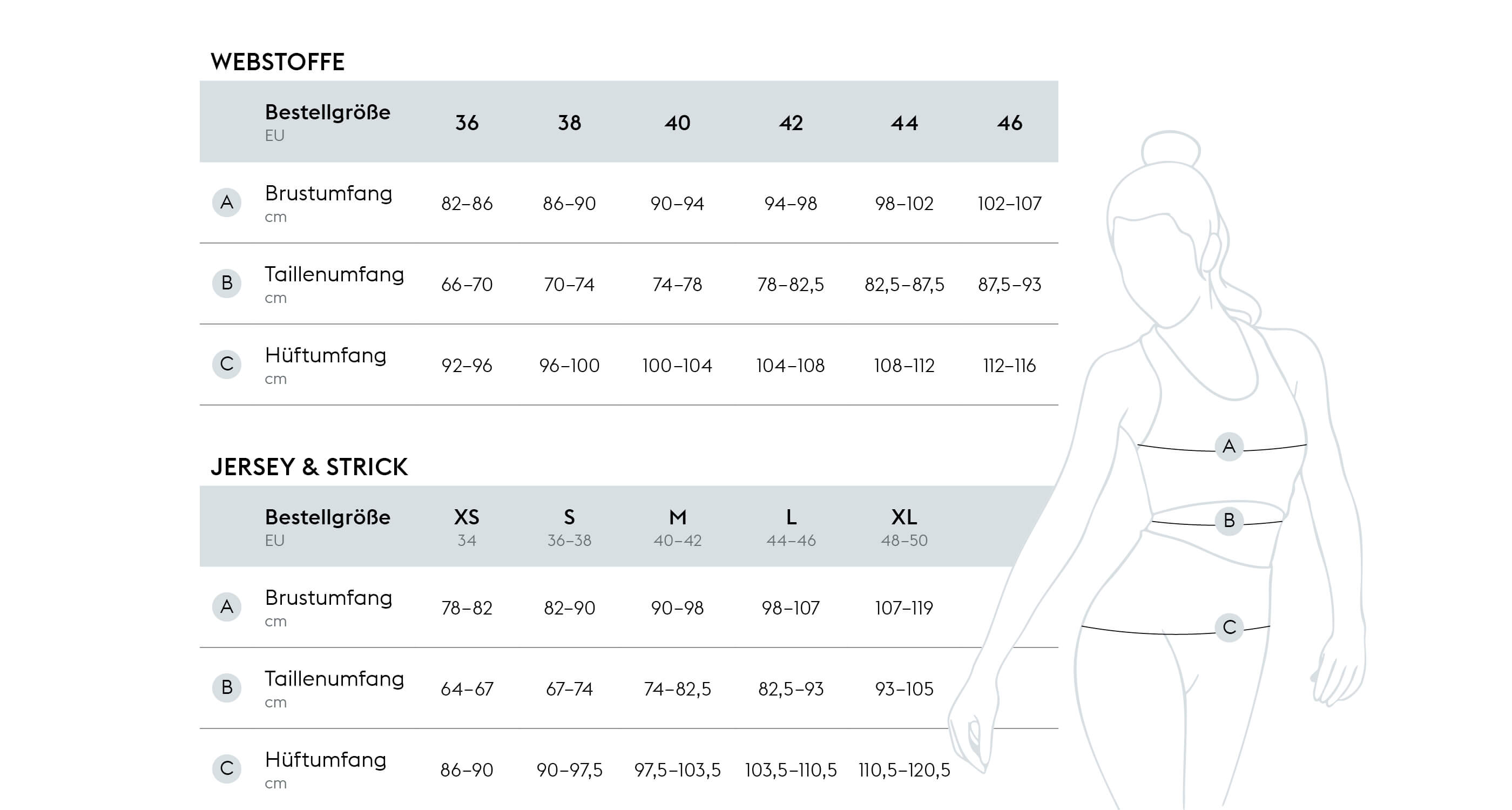 Hier findest du alle wichtigen Informationen, um die perfekte Passform der Kleidung zu finden.