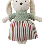 Diese kleine Häsin HOPPELOO bezaubert mit ihren liebevollen Details wie der kleinen Schleife am Ohr und den salbengrünen Socken. Dank ihrer kompakten Größe ist sie handlich genug, um überall dabei zu sein – im Kinderzimmer, Kindergarten oder auf Reisen. Aus stabiler Biobaumwolle gefertigt und mit recyceltem Polyester gefüllt, ist sie immer bereit für kuschelige Momente, Spiel und Abenteuer. Maße: 24 x 17 x 6 cm Oberstoff: 100 % Biobaumwolle Füllung: 100 % recycelter Polyester CE-Kennzeichnung Nicht waschmaschinengeeignet. Nicht bleichen. Nicht im Trockner trocknen. Nicht Bügeln. Nicht trockenreinigen. Wir empfehlen eine punktuelle Reinigung Flecken können mit einem nassen Tuch und etwas Seife entfernt werden.