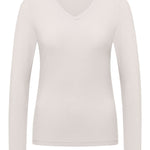Schmal geschnittenes Shirt aus fließendem Tencel-Modal mit leichtem Glanz. Der V-Ausschnitt bringt eine feminine Linie und macht den Style edel, soft und angenehm zu tragen.