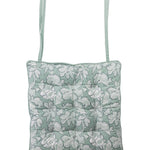 Mit unserem BLOSSOM CHARM Sitzkissen in ruhigem Türkis holst du Gelassenheit und moderne Frische in dein Zuhause. Das Obermaterial aus 100 % Biobaumwolle und die Füllung aus recycelter Baumwolle sorgen für angenehmen Sitzkomfort. Die Steppnähte halten die Füllung an Ort und Stelle, während die Bänder die Kissenfüllung zuverlässig fixieren. Die florale Vorderseite auf türkisfarbenem Hintergrund wirkt beruhigend und klar, die Rückseite mit dezenten Ornamenten setzt moderne Akzente.