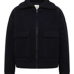 Gestrickte Wollwalk-Jacke in moderner Blousonform. Die weite Passform, der gerippte Wollkragen und aufgesetzte Taschen geben dem Look einen trendigen, zugleich gemütlichen Charakter.